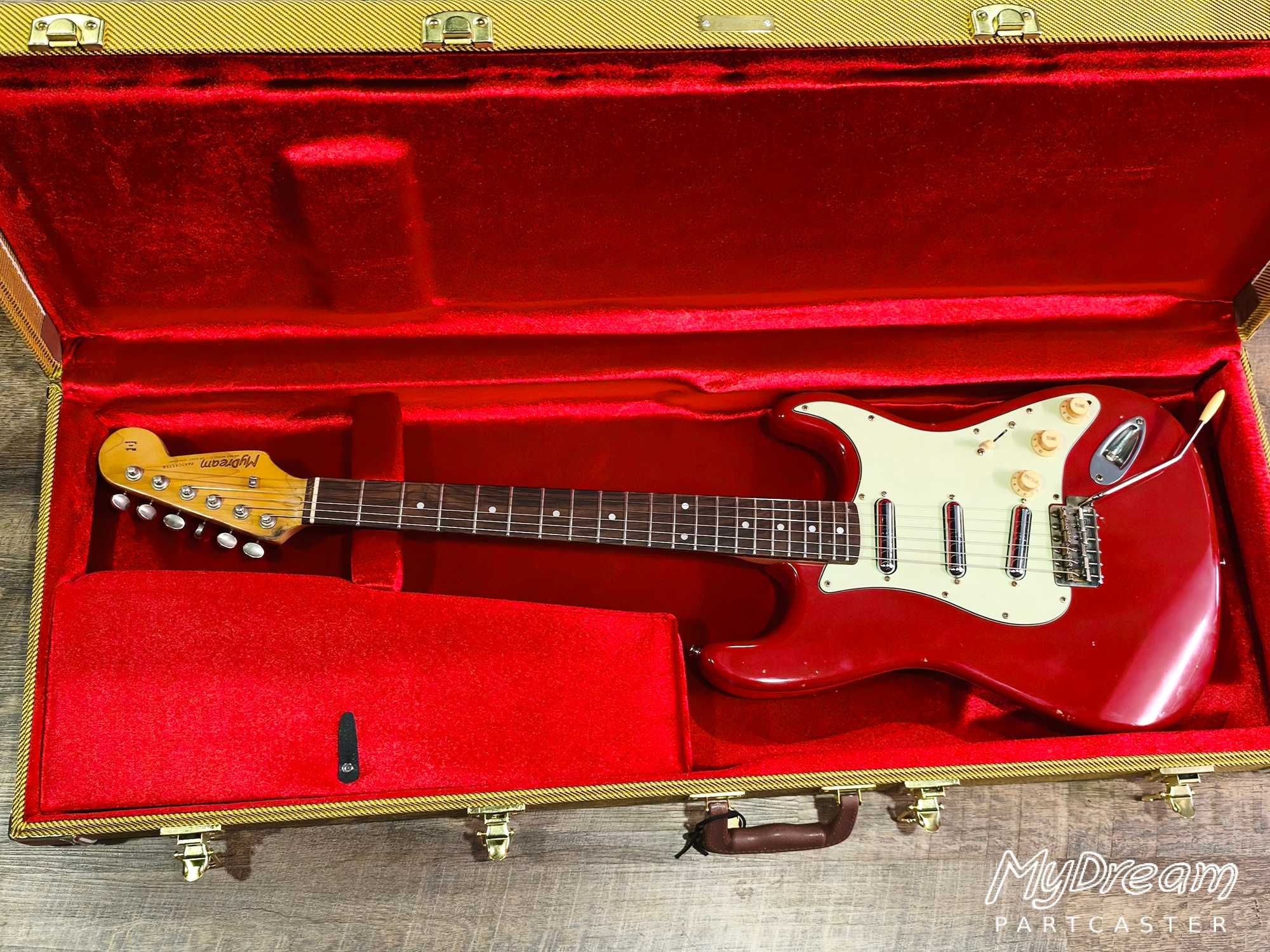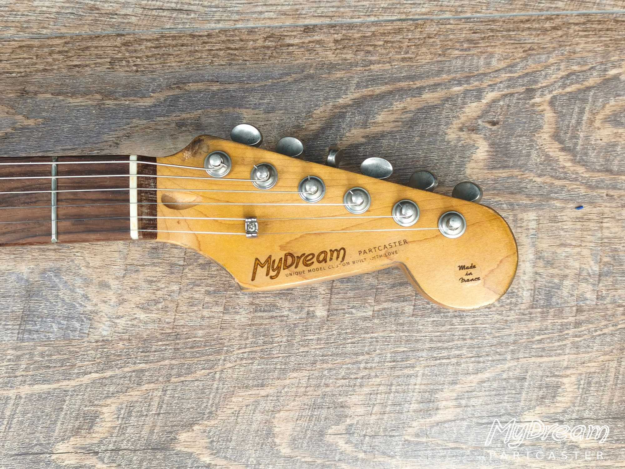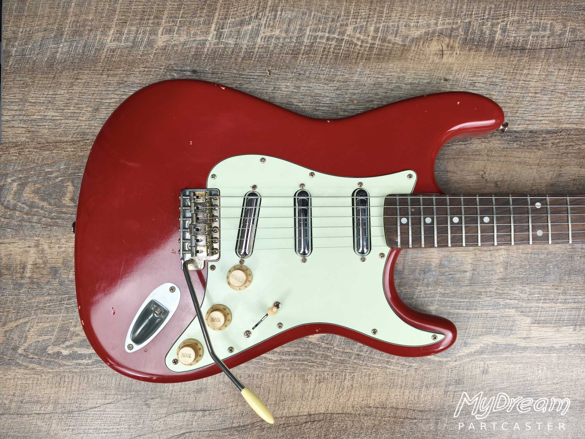 Cette partcaster avec sa finition nitrocellulosique relic lui donne l'apparence d'une Stratocaster des années 60.